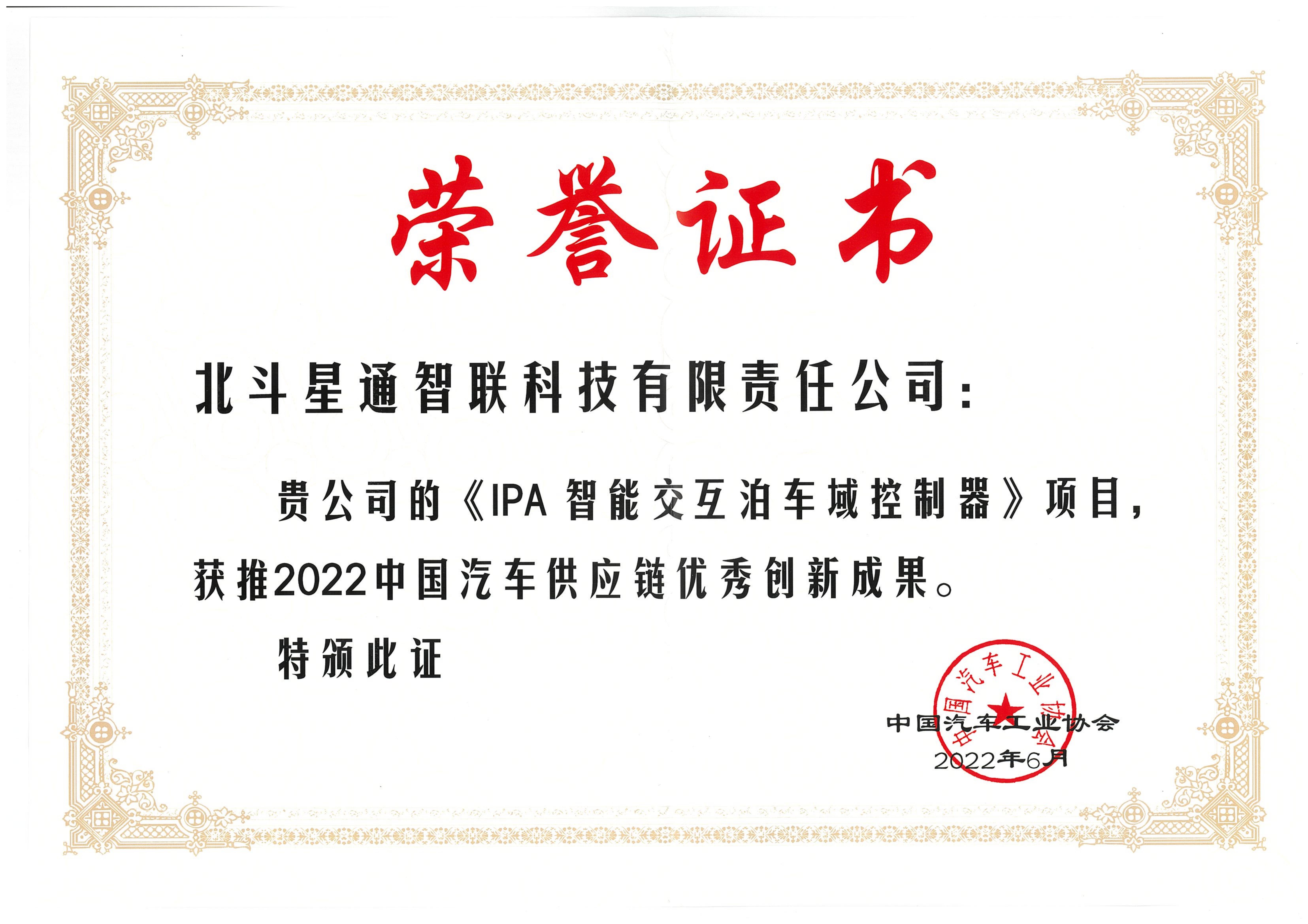 在日前举办的“2022中国汽车供应链大会”上,bicv发布的“ipa智能交互泊车域控制器”,凭借前瞻的设计理念和领先的技术优势,荣获中国汽车工业协会颁发的“2022中国汽车供应链优秀创新成果”奖。